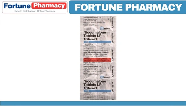 Acitrom 1 Tablet is an oral anticoagulant that helps prevent harmful blood clots in the legs, lungs, brain, and heart. It is used for deep vein thrombosis, pulmonary embolism, and stroke prevention.Acitrom 1 Tablet should be taken as advised by the doctor. You may take it with or without food, but it is better to take it at a fixed time. This medicine should not be stopped abruptly without consulting the doctor. You should take this medicine regularly to get the most benefit, even if you feel fine. It prevents future harm.The most common side effect of Acitrom 1 Tablet is bleeding. Let your doctor know immediately if you see a pinpoint rash or blood in your vomit, urine, or stool. If you are going under any surgery or dental treatment, you may need to stop this medicine for some time, but only after consulting with your doctor.Before taking Acitrom 1 Tablet, you must inform the doctor if you are suffering from any kidney or liver disease or taking any medicine, including supplements and herbal products. Also, let your doctor know if you are pregnant or breastfeeding and about all the other medications that you are taking regularly.