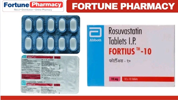 Fortius 10 Tablet belongs to a group of medicines called statins. It is used to lower cholesterol and triglyceride levels and reduce the risk of heart disease. Cholesterol is a fatty substance that builds up in your blood vessels and causes narrowing, which may lead to a heart attack or stroke.Fortius 10 Tablet can be taken with a meal or on an empty stomach. You can take it at any time of the day, but try to take it at the same time each day. Most people with high cholesterol do not feel ill. Do not stop taking the medicine suddenly without your doctor’s advice. Stopping your medicine may increase your cholesterol levels, making your condition worse and increasing your risk of heart disease and stroke.This medicine is only one part of the treatment program, which should also include a healthy diet, regular exercise, smoking cessation, moderation of alcohol intake, and weight reduction. You can eat normally while taking this medicine, but try to avoid foods that are high in fat. It is important to have your cholesterol levels checked regularly.Common side effects of this medicine include muscle pain, weakness, nausea, headache, and abdominal pain. These are usually mild and disappear after a short time. Consult your doctor if they persist or if you notice any yellowing of your eyes or get repeated or unexplained muscle pains.This medicine should not be used in conditions such as liver disease. Also, pregnant women and breastfeeding women should not take this medicine, as it may harm the developing baby. Diabetic patients should monitor their blood sugar levels while taking this medicine, as it may lead to an increase in blood sugar levels.BENEFITS OF FORTIUS TABLET