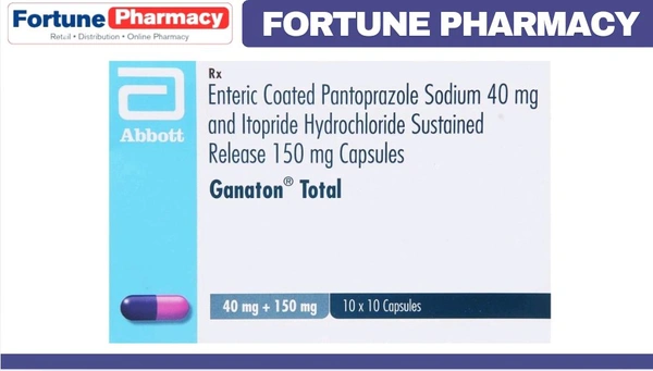 HOW GANATON TOTAL CAPSULE SR WORKSGanaton Total Capsule SR is a combination of two medicines: Pantoprazole and Itopride. Pantoprazole is a proton pump inhibitor (PPI). It works by reducing the amount of acid in the stomach which helps in the relief of acid-related indigestion and heartburn. Itopride is a prokinetic which works on the region in the brain that controls vomiting. It also acts on the upper digestive tract to increase the movement of the stomach and intestines, allowing food to move more easily through the stomach.