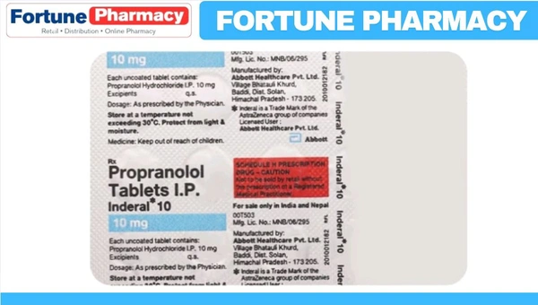 Inderal 10 Tablet is a medicine used to prevent angina (chest pain) and migraine, and manage pheochromocytoma (a rare adrenal gland tumor). It works by slowing the heart rate and relaxing blood vessels, helping to reduce strain on the heart and improve blood flow.