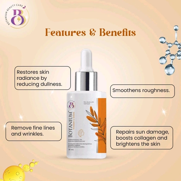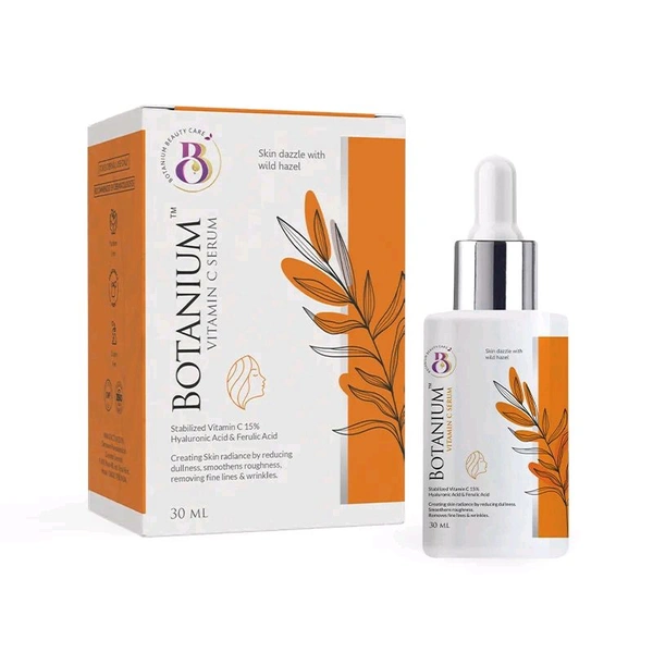 Unleash the power of nature and science with Botanium Vitamin C Serum, the ultimate skincare solution for radiant, youthful skin. Formulated with a potent 15% stabilized Vitamin C, Hyaluronic Acid, and Ferulic Acid, this serum is designed to transform your complexion and elevate your daily skincare routine.