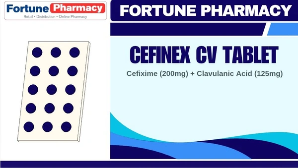 Cefinex CV Tablet is a combination of two medicines: Cefixime and Clavulanic Acid. Cefixime is an antibiotic. It works by preventing the formation of the bacterial protective covering which is essential for the survival of bacteria. Clavulanic Acid is a beta-lactamase inhibitor which reduces resistance and enhances the activity of Cefixime against bacteria.