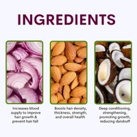 - Reduces Hair Fall: A potent blend of Onion Seed Extract and nourishing oils minimizes hair breakage, reduces hair fall, and adds volume.