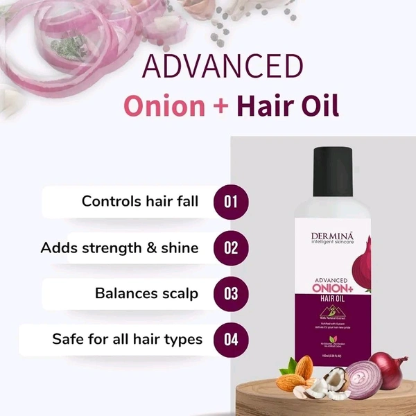 Dermina Advanced Onion Hair Oil : Onion & Almond Oil for Hair Fall Control | 100% Natural | No Mineral Oil & Silicones | Hair Growth & Scalp Nourishment |