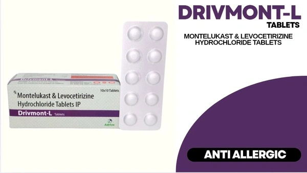 Drivmont L Tablet is a combination of two medicines: Levocetirizine and Montelukast, which relieves sneezing and runny nose due to allergies. Levocetirizine is an antiallergic which blocks a chemical messenger (histamine) responsible for runny nose, watery eyes and sneezing. Montelukast is a leukotriene antagonist. It works by blocking another chemical messenger (leukotriene). This reduces inflammation (swelling) in the airways and nose, and improves symptoms.