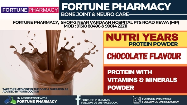 Fuel your body and energize your day with Nutri Years Protein Powder, available exclusively at Fortune Pharmacy. Designed to support active lifestyles and promote overall well-being, this premium protein powder is the perfect addition to your daily routine. Whether you're a fitness enthusiast, a busy professional, or someone simply looking to enhance their nutrition, Nutri Years Protein Powder is here to help you thrive.