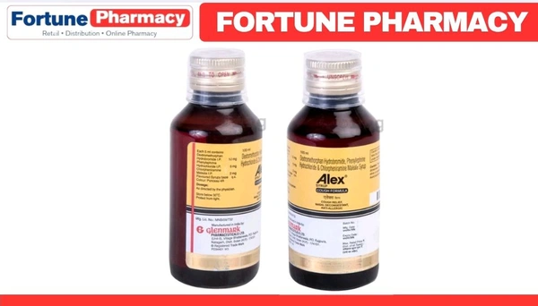 Alex Syrup is a combination of three medicines: Phenylephrine, Chlorpheniramine Maleate, and Dextromethorphan Hydrobromide. Phenylephrine is a decongestant which narrows the small blood vessels providing relief from congestion or stuffiness in the nose. Chlorpheniramine Maleate is an antiallergic which relieves allergy symptoms like runny nose, watery eyes and sneezing. Dextromethorphan Hydrobromide is a cough suppressant which relieves cough by reducing the activity of cough center in the brain.