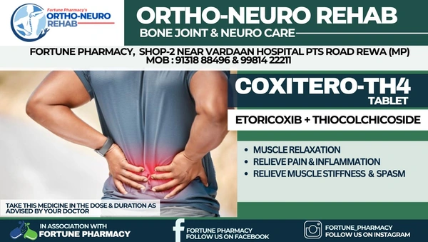 Say goodbye to discomfort with Coxitero-TH4 Tablet, expertly crafted by PCHPL Psychocare Health to help you regain control of your daily life. This advanced formulation combines the potency of Etoricoxib 60mg and Thiocolchicoside 4mg to deliver targeted relief, supporting your journey to enhanced mobility and well-being.